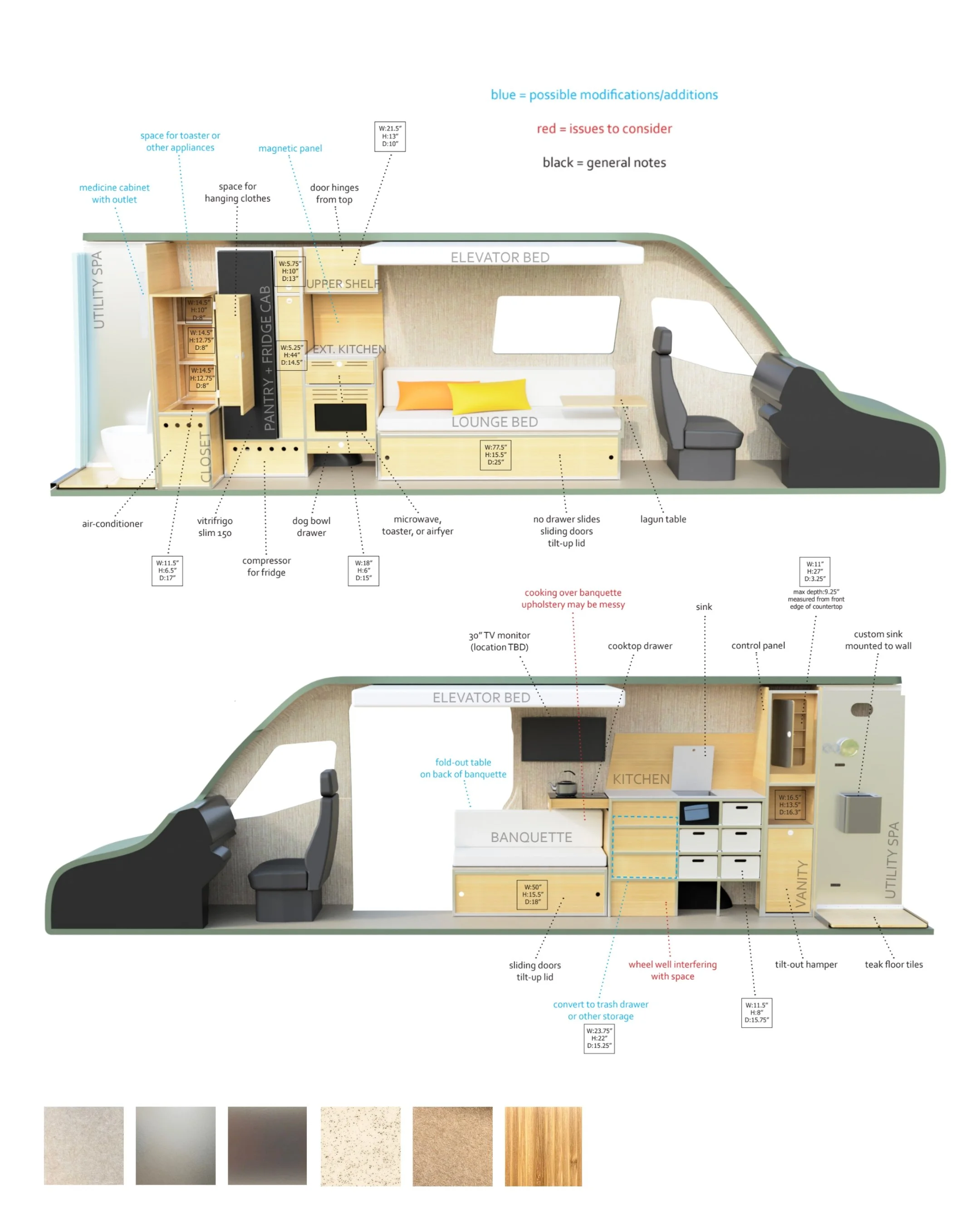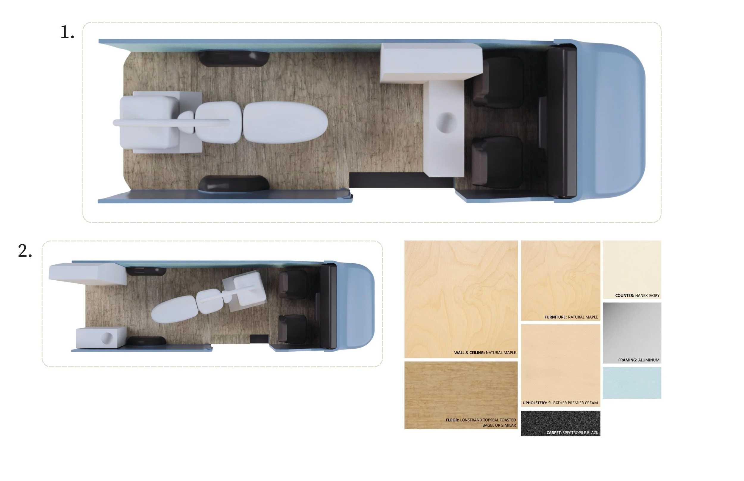 Floor plan options for a traveling clinic.