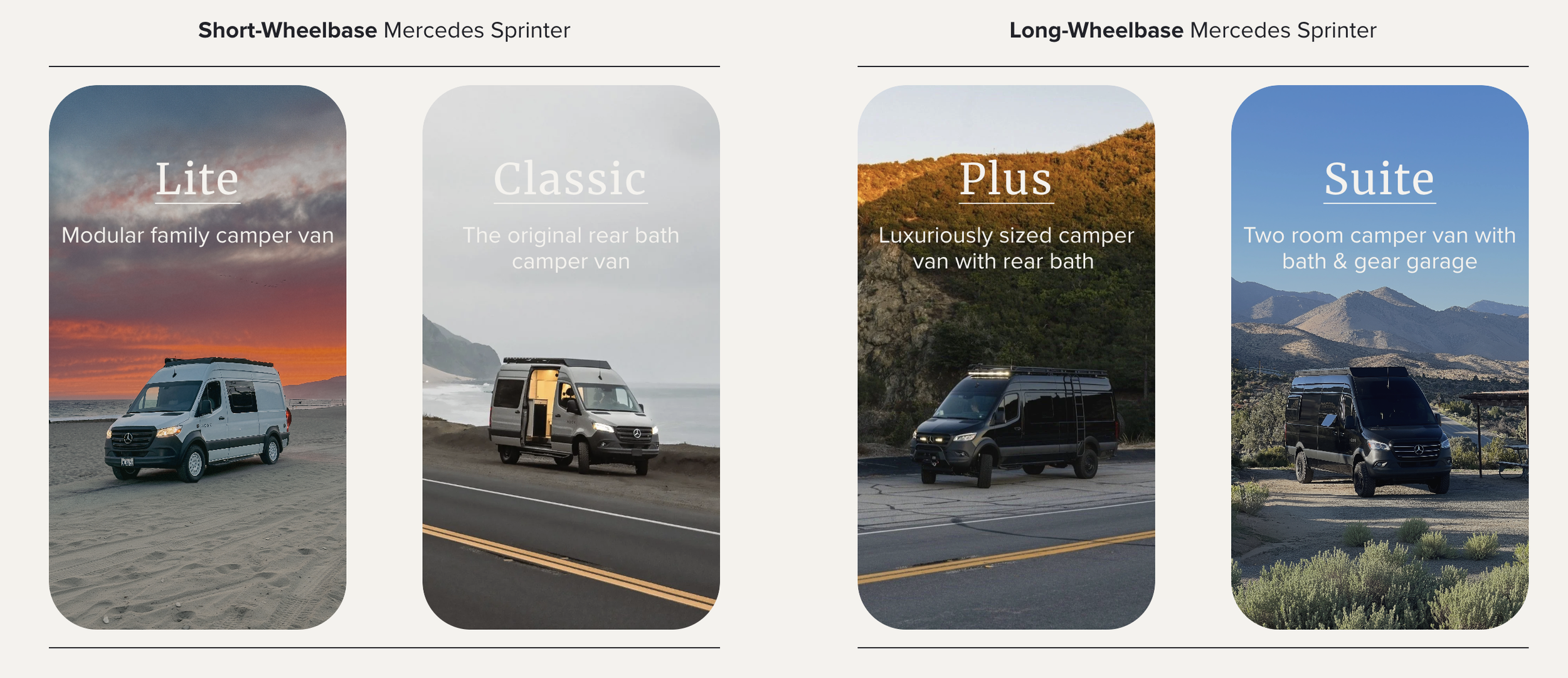 Our four models: Lite, Classic, Plus, Suite.
